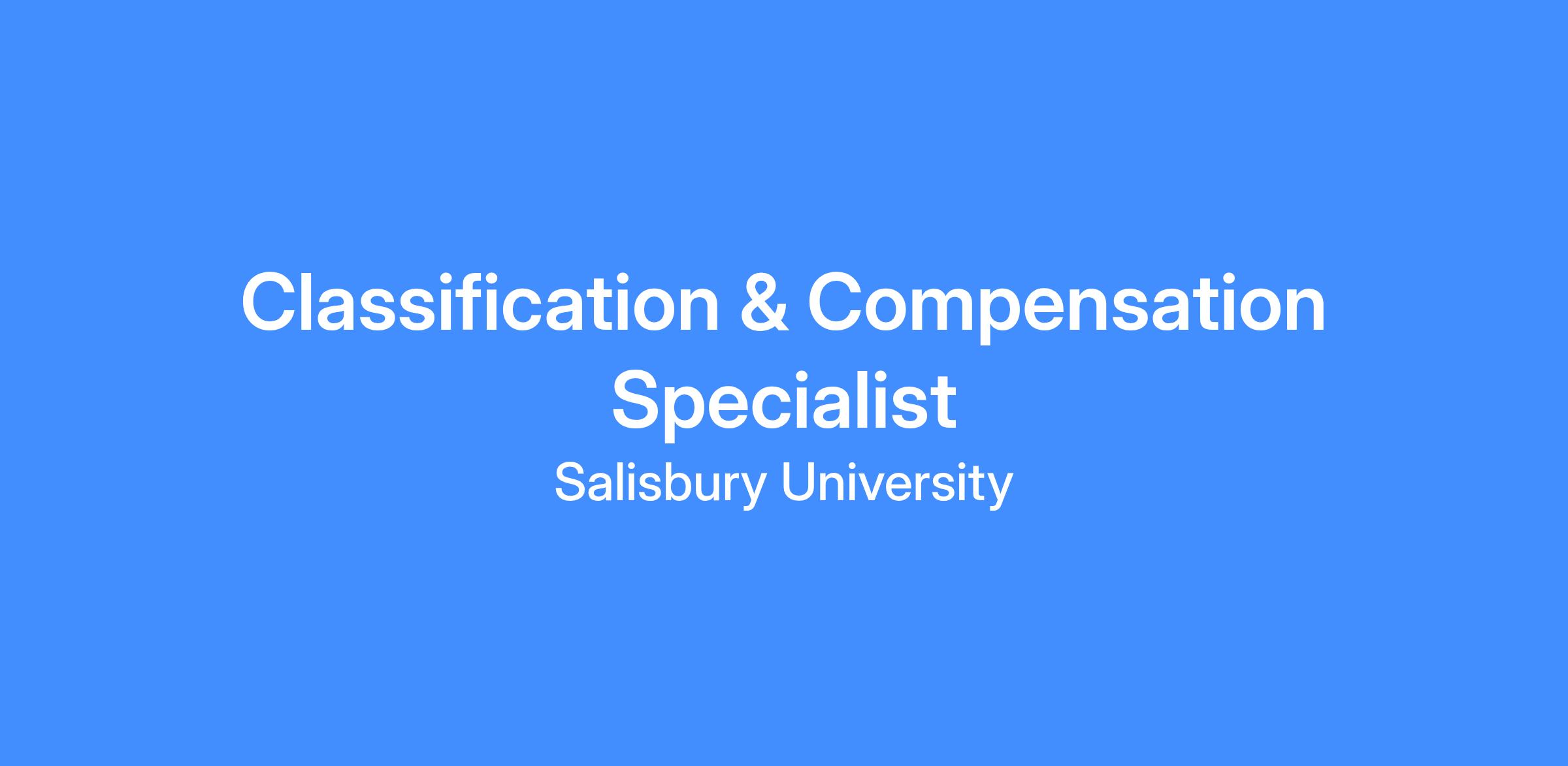 The Classification & Compensation Specialist serves as Salisbury University’s central authority for position management, job analysis, classification, and compensation. The role ensures all positions are accurately designed, properly leveled, compliant with USM and state policies, and aligned with institutional workforce needs.