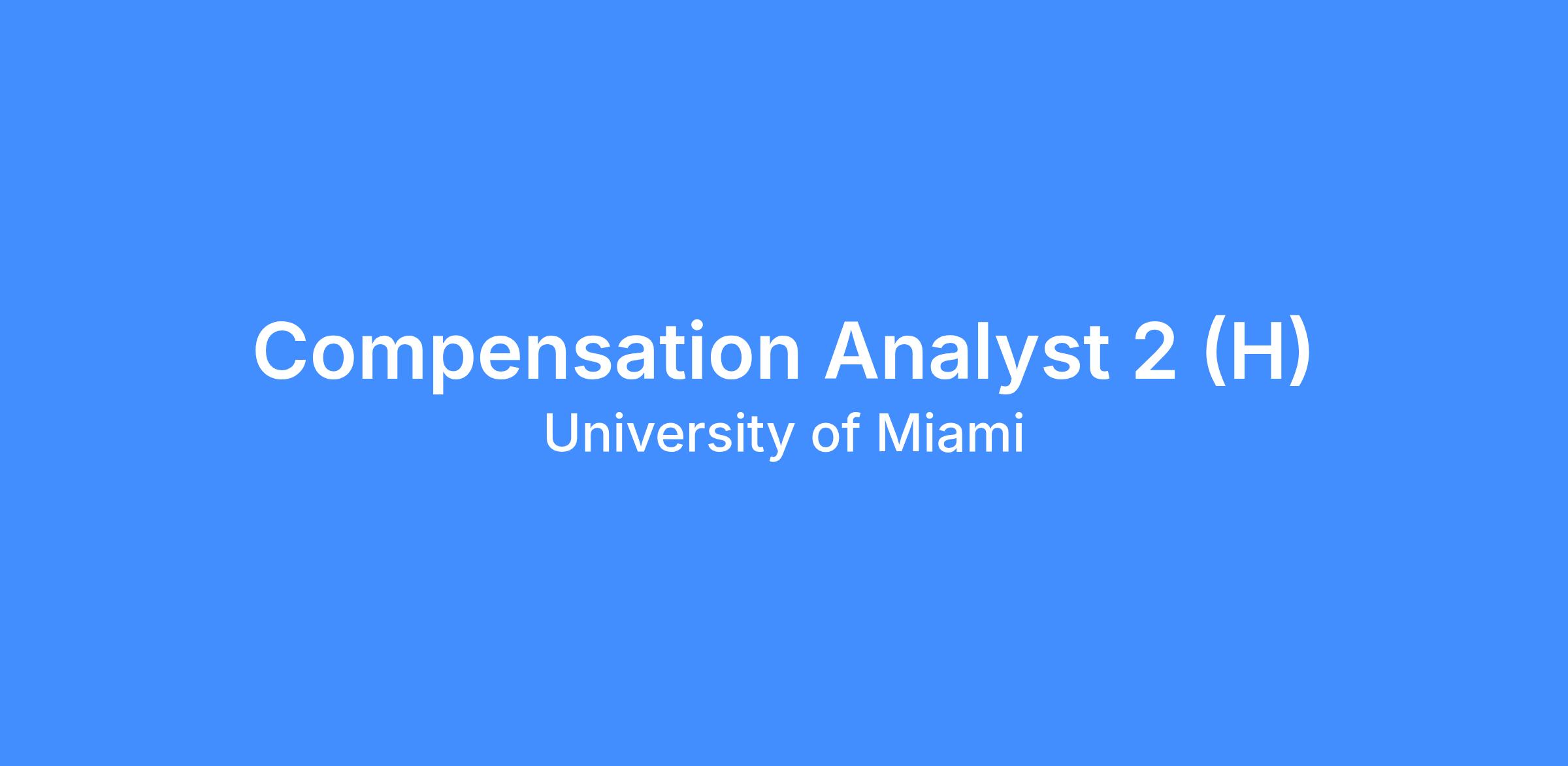 The University of Miami has an exciting opportunity for a Compensation Analyst 2.