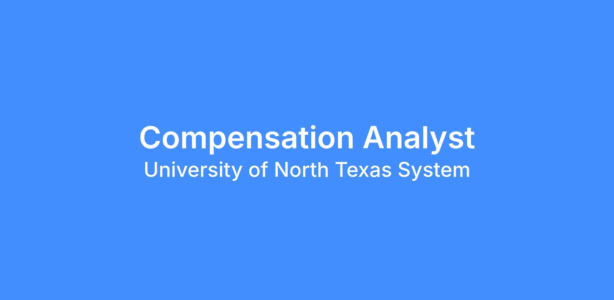 Position Overview The Compensation Analyst provides direct support in the administration of compensation and performance management policies and procedures. The incumbent in this position works with a variety of stakeholders across all UNT System institutions to provide guidance, recommendations, and resolve compensation and performance evaluation system issues. This is a professional role responsible for providing direct customer support and facilitating compensation and performance management strategy within the UNT System and its component institutions. |