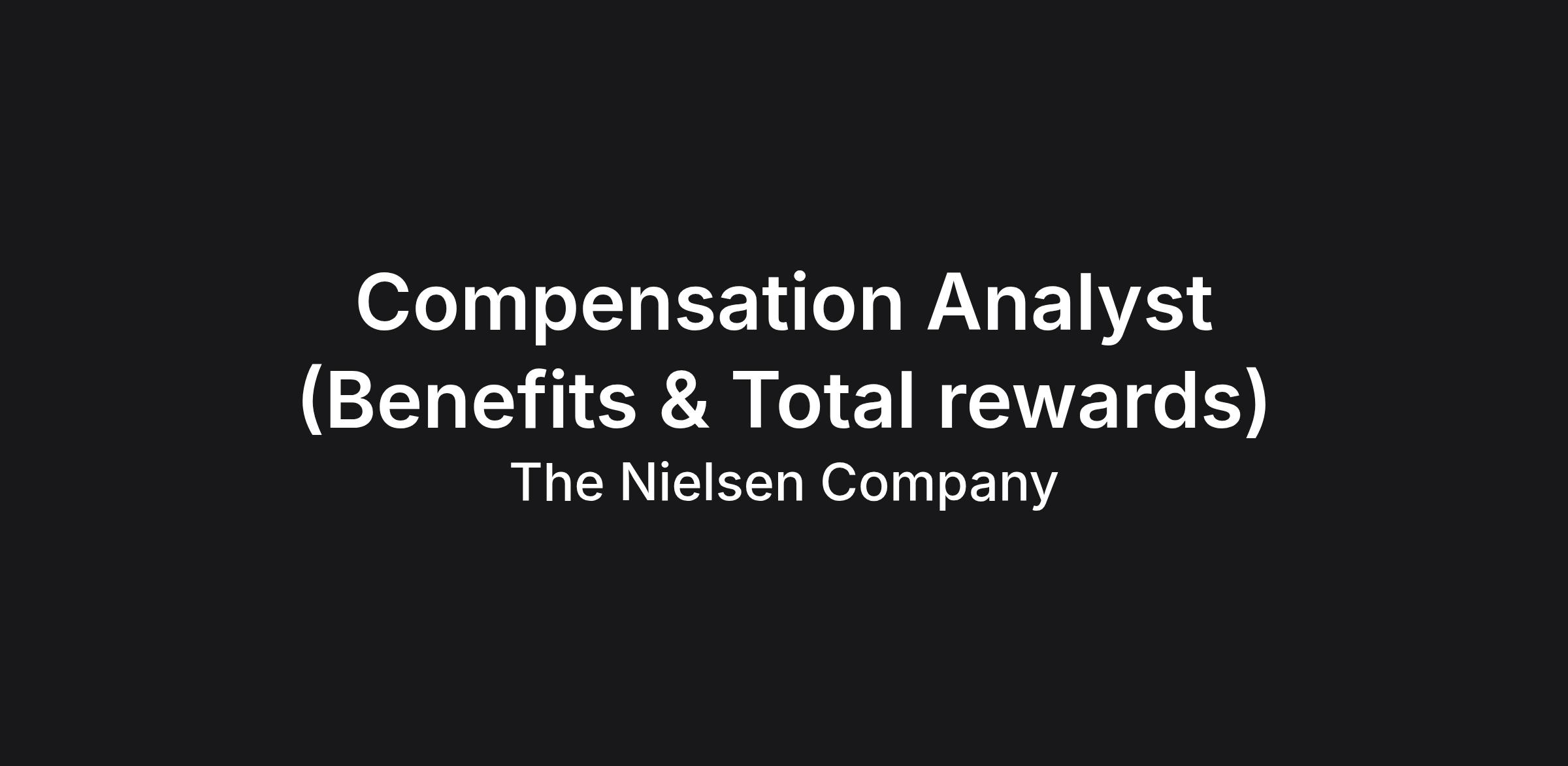 The Compensation and Benefits Analyst is an integral part of the Nielsen HR team. In this individual contributor role, you will act as a subject matter expert, providing analytical and consultative support to TA and HR Partners to ensure our rewards programs remain competitive, equitable, and aligned with our global philosophy.