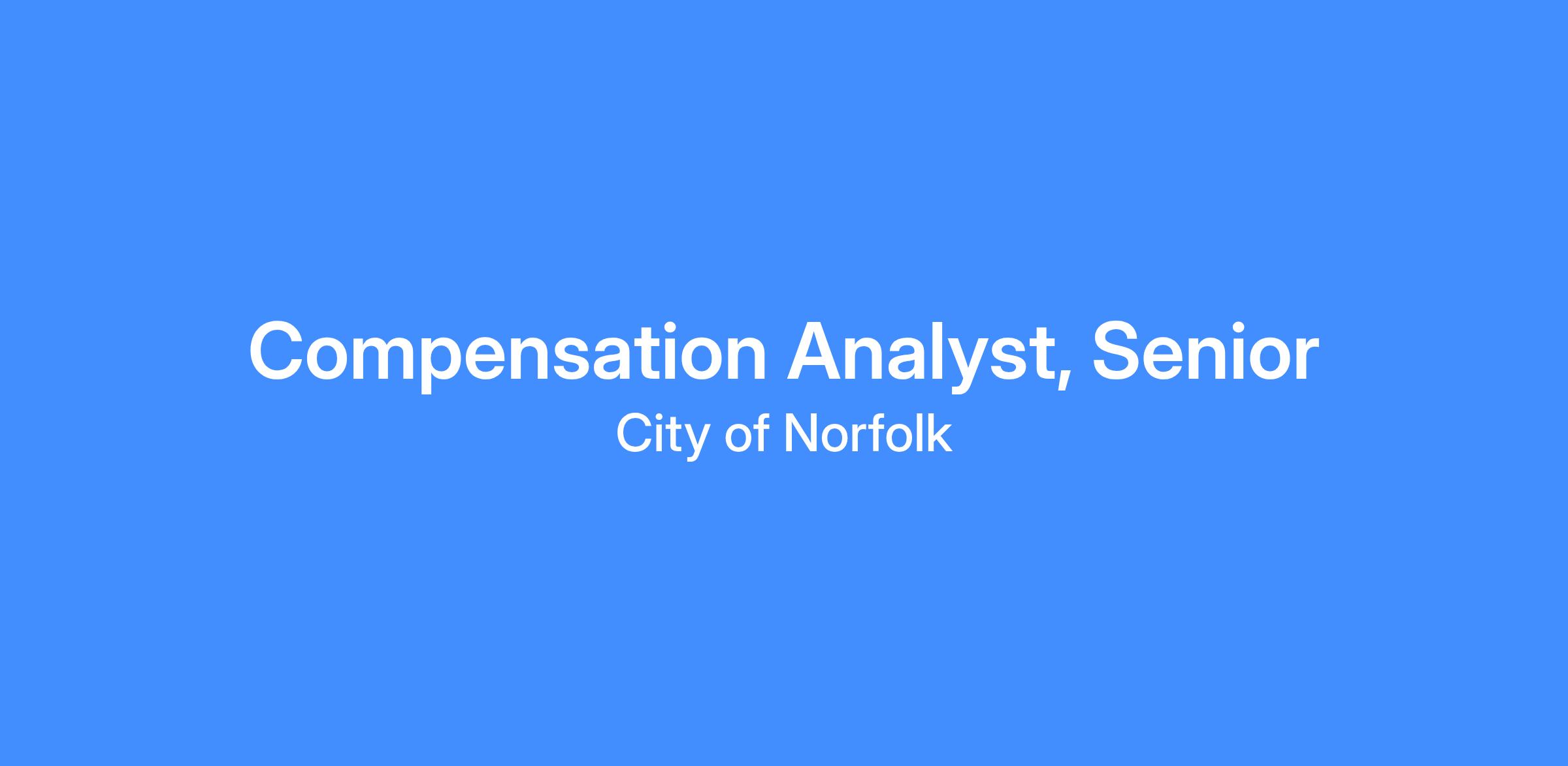 The Department of Human Resources attracts, develops, and retains diverse and exceptional employees committed to supporting our vibrant and resilient coastal community. We are currently seeking a Senior Compensation Analyst that will lead complex compensation projects, conduct in-depth data analysis, and provide expert guidance on compensation related matters. The position will play a key role in designing and optimizing compensation programs to attract and retain talent for the City of Norfolk, while ensuring internal equity and market competitiveness.