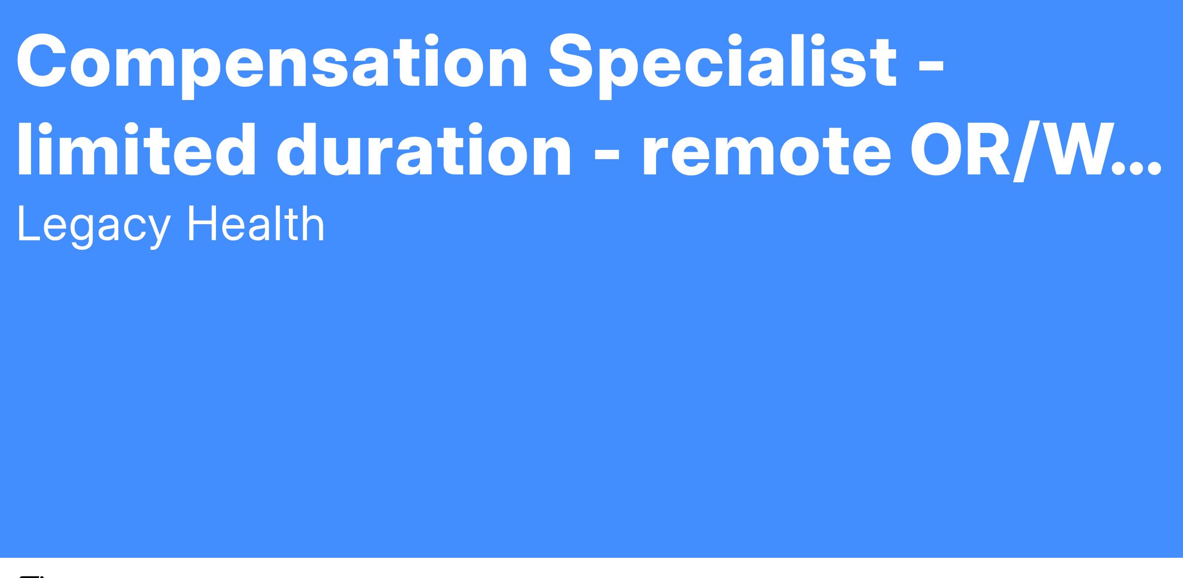 Our mission of making life better for others includes every person we serve, including our employees. By promoting fair, competitive and equitable pay practices, you will help to support compensation customers so that Legacy Health can most effectively work as a team with a unified goal. If this is how you view your work as a Compensation Specialist, we invite you to consider this opportunity.