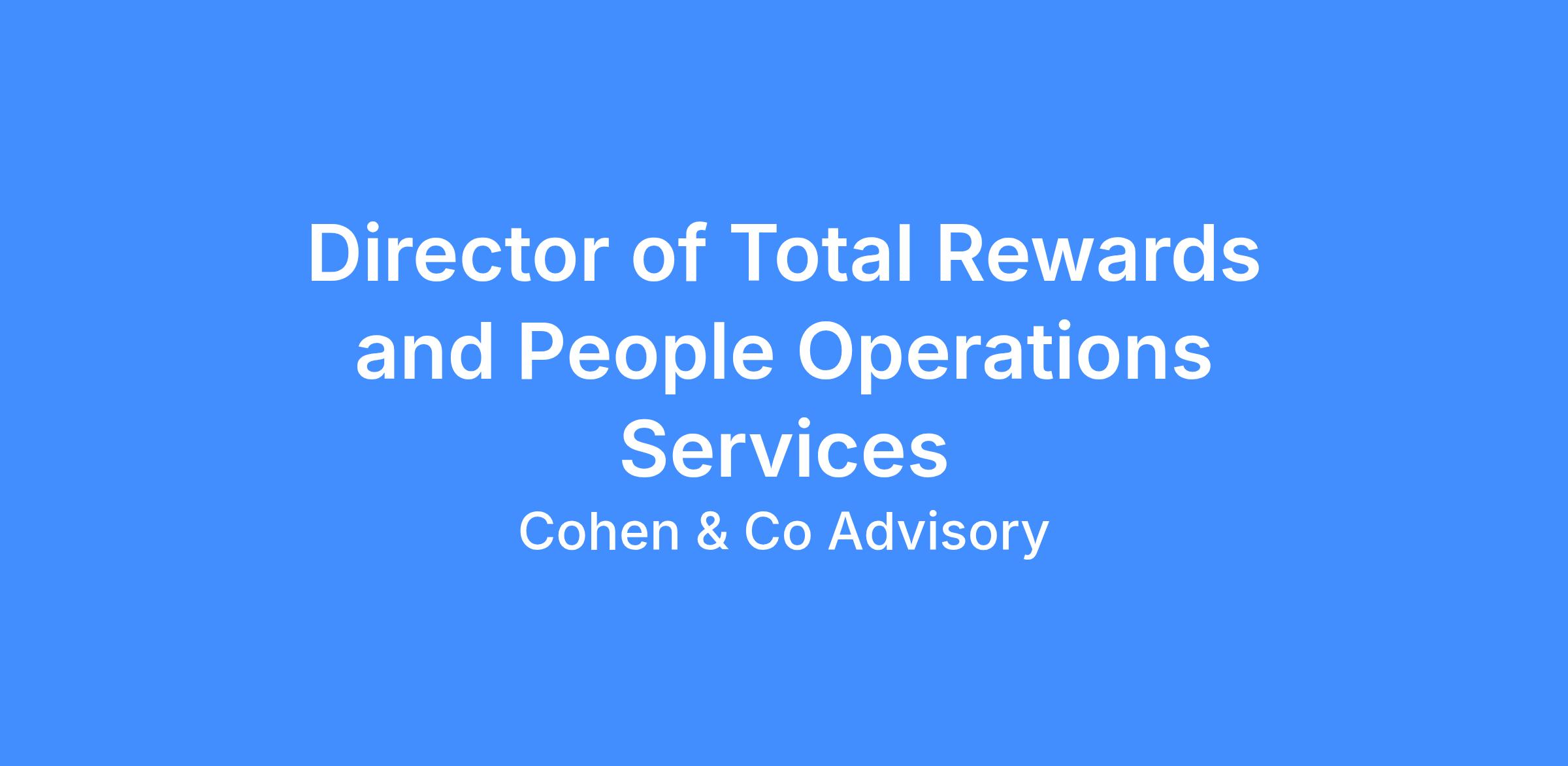 Cohen & Co is seeking a strategic and hands-on Director of Total Rewards and People Operations Services to lead the firm’s compensation, benefits, payroll, and people operations infrastructure. This leader will design a competitive, data-driven, and financially responsible total rewards strategy that aligns with our growth agenda, professional services model, and culture of excellence.
