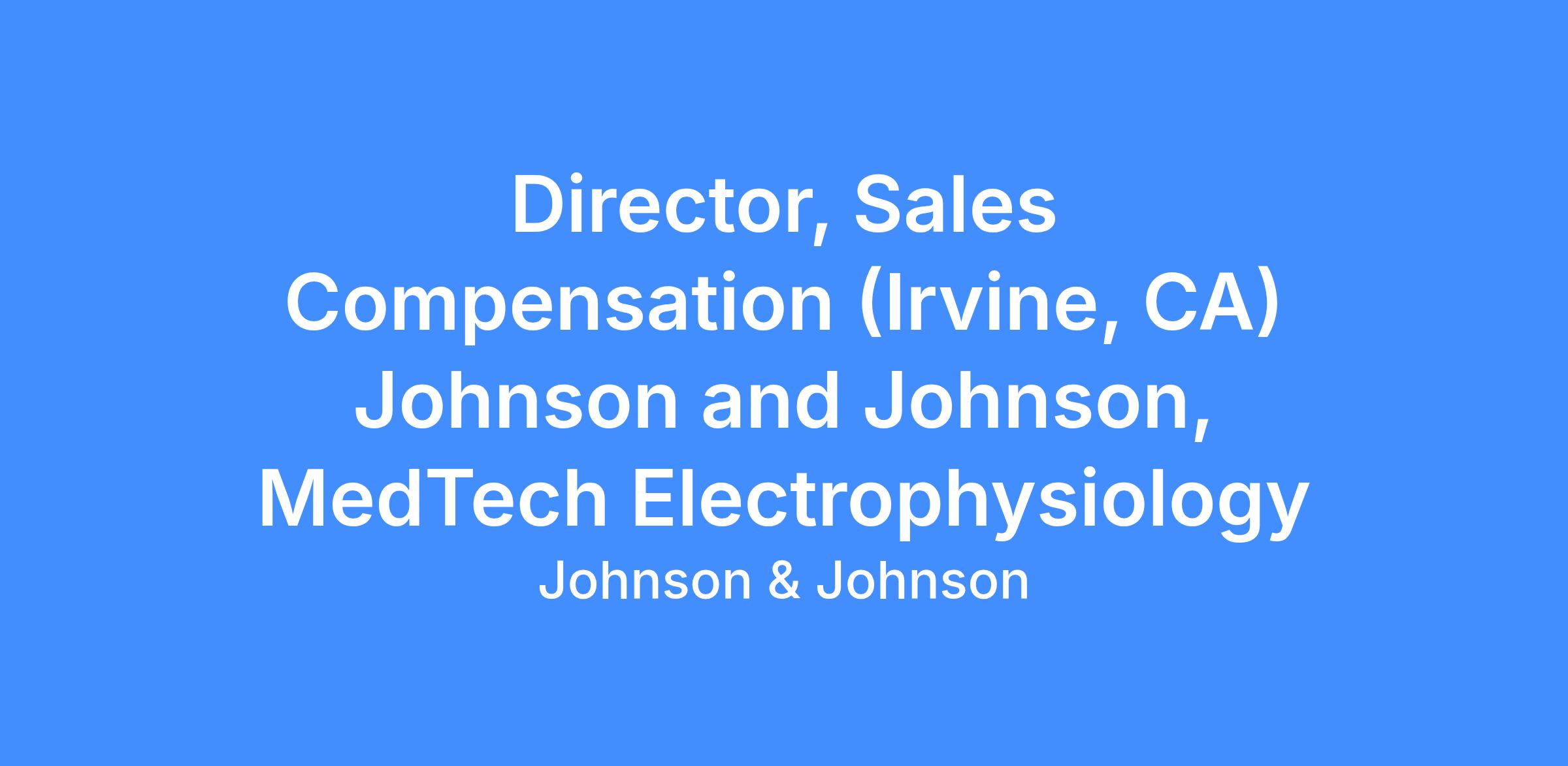 Johnson & Johnson MedTech, Electrophysiology, is seeking a Director, Sales Compensation to lead the development, implementation, and governance of compensation programs for our US sales organization. This role is based in Irvine, CA.