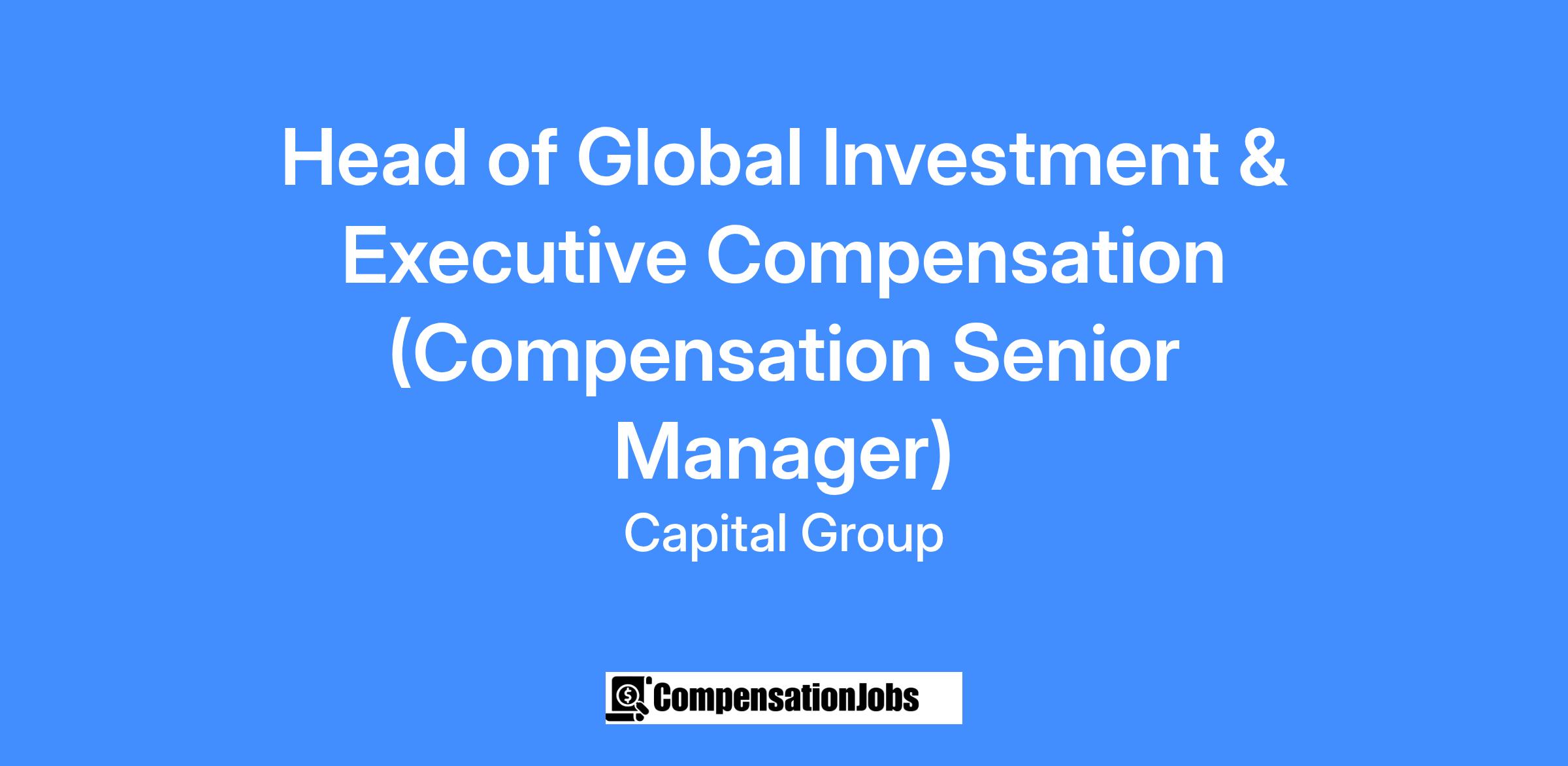 In the context of continuing global growth and innovation, Capital Group is seeking a Head of Global Investments Platform & Executive Compensation.