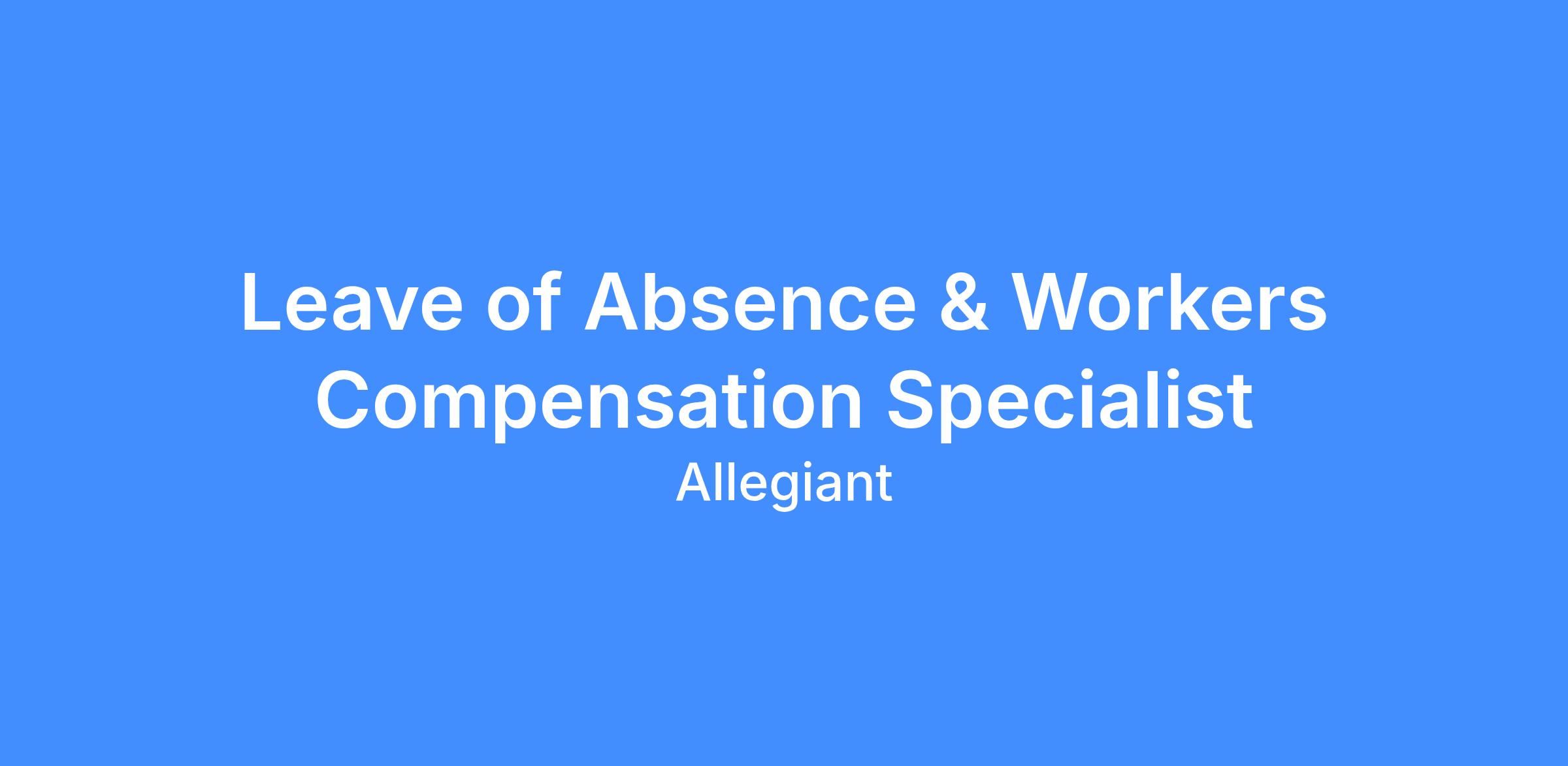 Years of Experience: Minimum one (1) year of Worker's Compensation, ACA Compliance or Leave of Absence experience, airline industry preferred