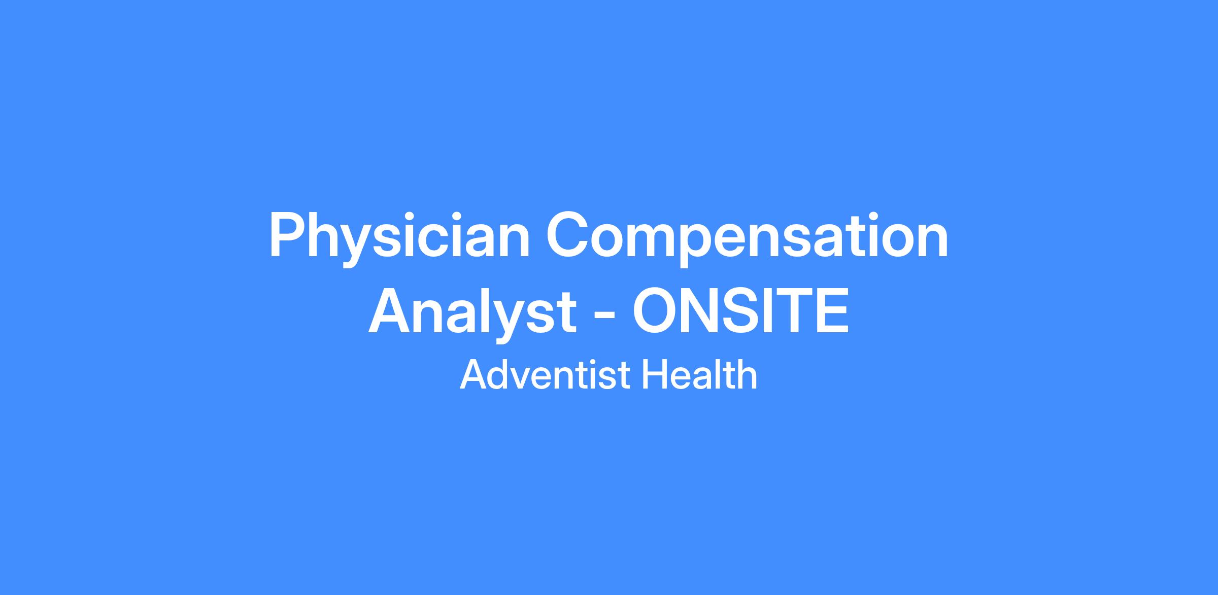 Physician Compensation Analyst - ONSITE