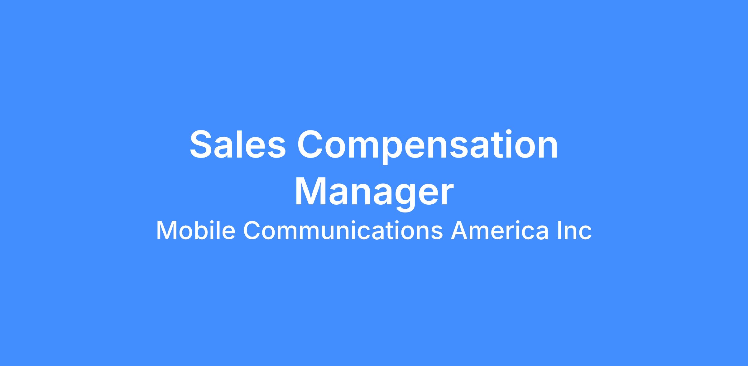 Mobile Communications America, Inc., a leader in wireless communications, data, and security solutions is seeking an experienced and results-driven Sales Compensation Manager to manage and develop the sales compensation team within MCA. This role is responsible for the design, administration, and continuous improvement of sales incentive programs that drive sales motivation and business growth. The ideal candidate brings deep expertise in sales compensation plan design, strong people leadership skills, and the strategic acumen to partner with senior leaders and influence sales compensation strategy across the organization.
