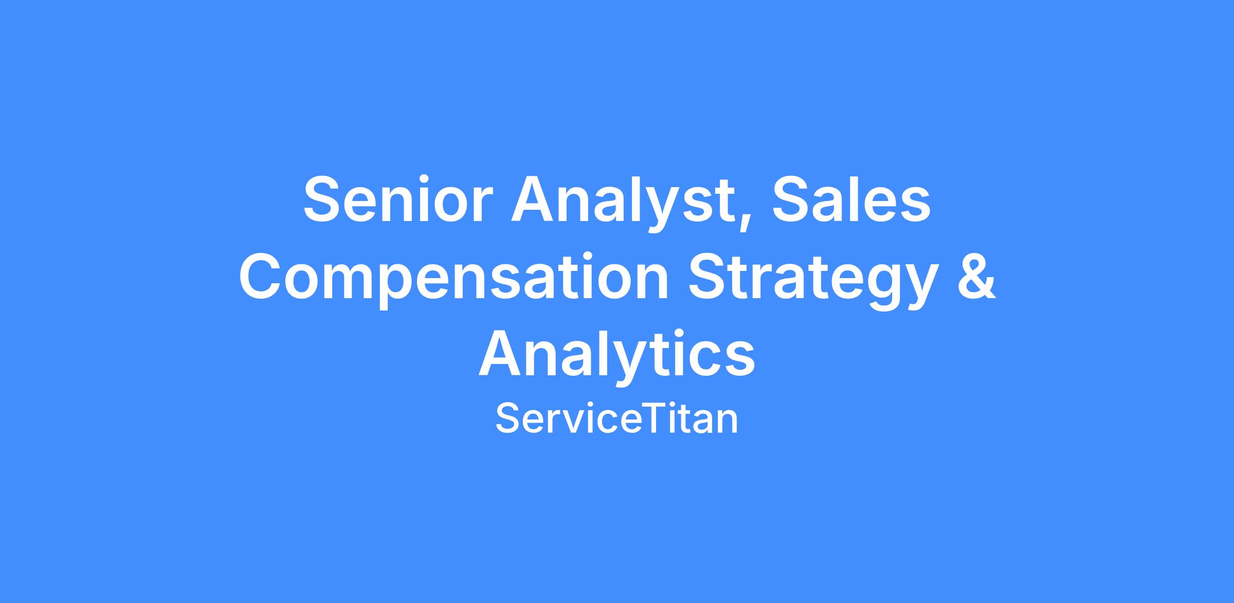 The Sr. Analyst - Sales Compensation Strategy & Analytics is an integral role on the Revenue Strategy & Operations team, driving analytics & insights of incentive compensation plans across the business (Sales Dev, New Logo Sales, Cross Sell/Upsell, Fintech, Post Sales) that drive ServiceTitan’s sustainable growth. This individual will also benchmark industry best practices to ensure our incentive plans both align with our company outcomes and are competitive within the broader market. This is a high impact role with the opportunity for broad-based impact, helping to power effective incentive compensation for 700+ Titans, driving extraordinary outcomes for ServiceTitan and our customers.