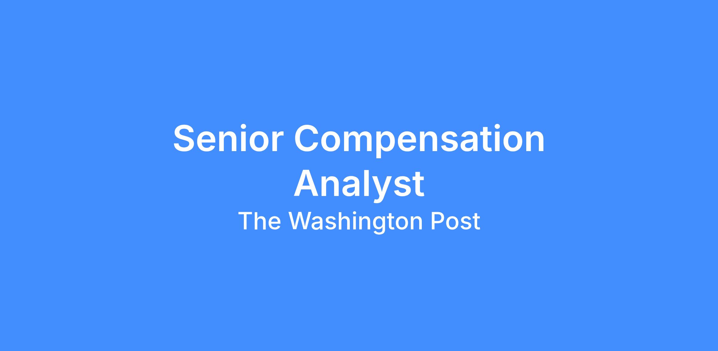 The Washington Post is looking for a mid-career Senior Compensation Analyst with background in base and variable pay management. Reporting to the Director, Total Rewards & Global Mobility, you’ll put your skills to work managing our day-to-day compensation processes and driving strategic-level programs to advance our goals of transparency, equity and external competitiveness.