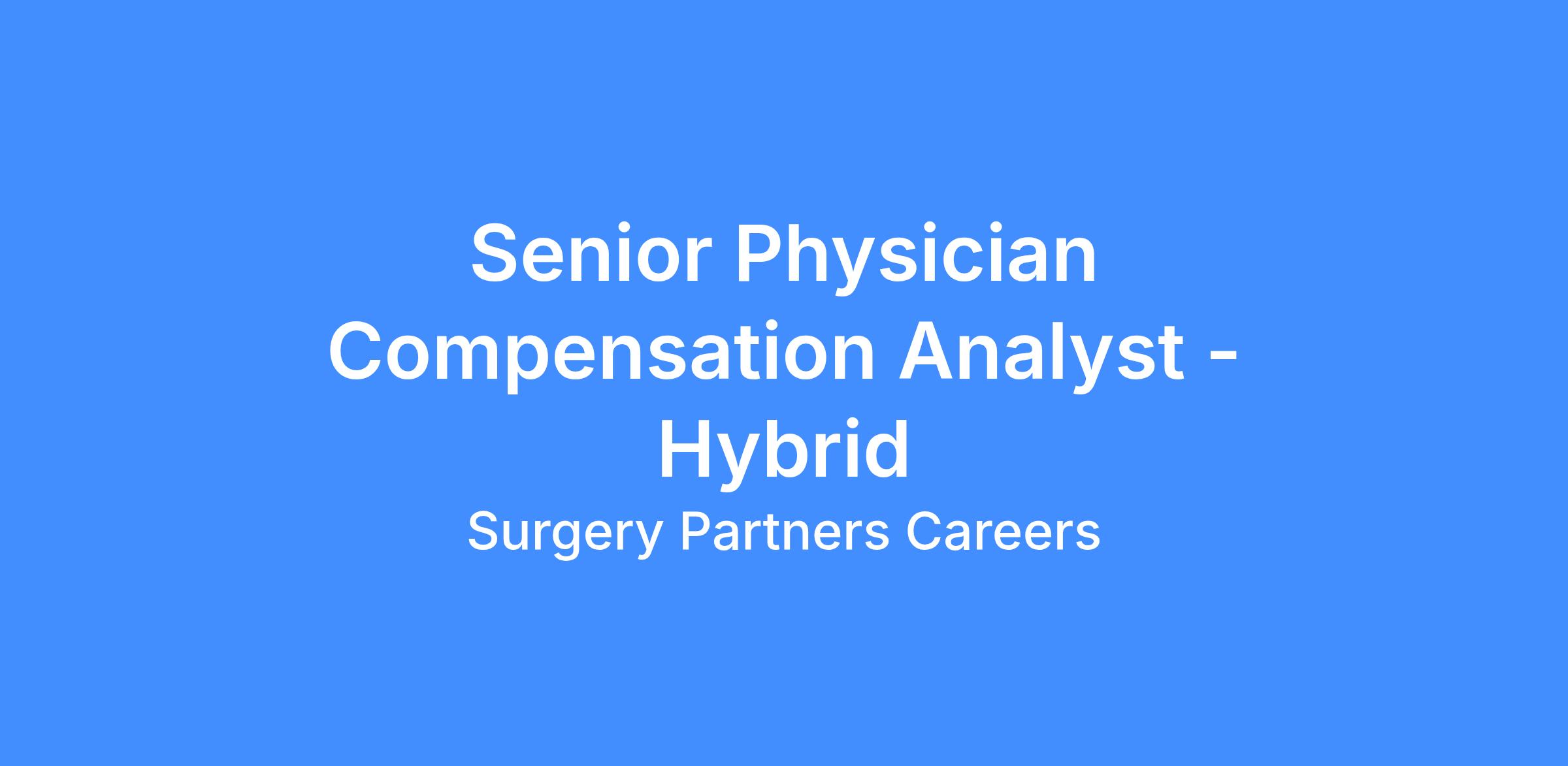 Surgery Partners is seeking a Compensation Analyst – Physician Practices!