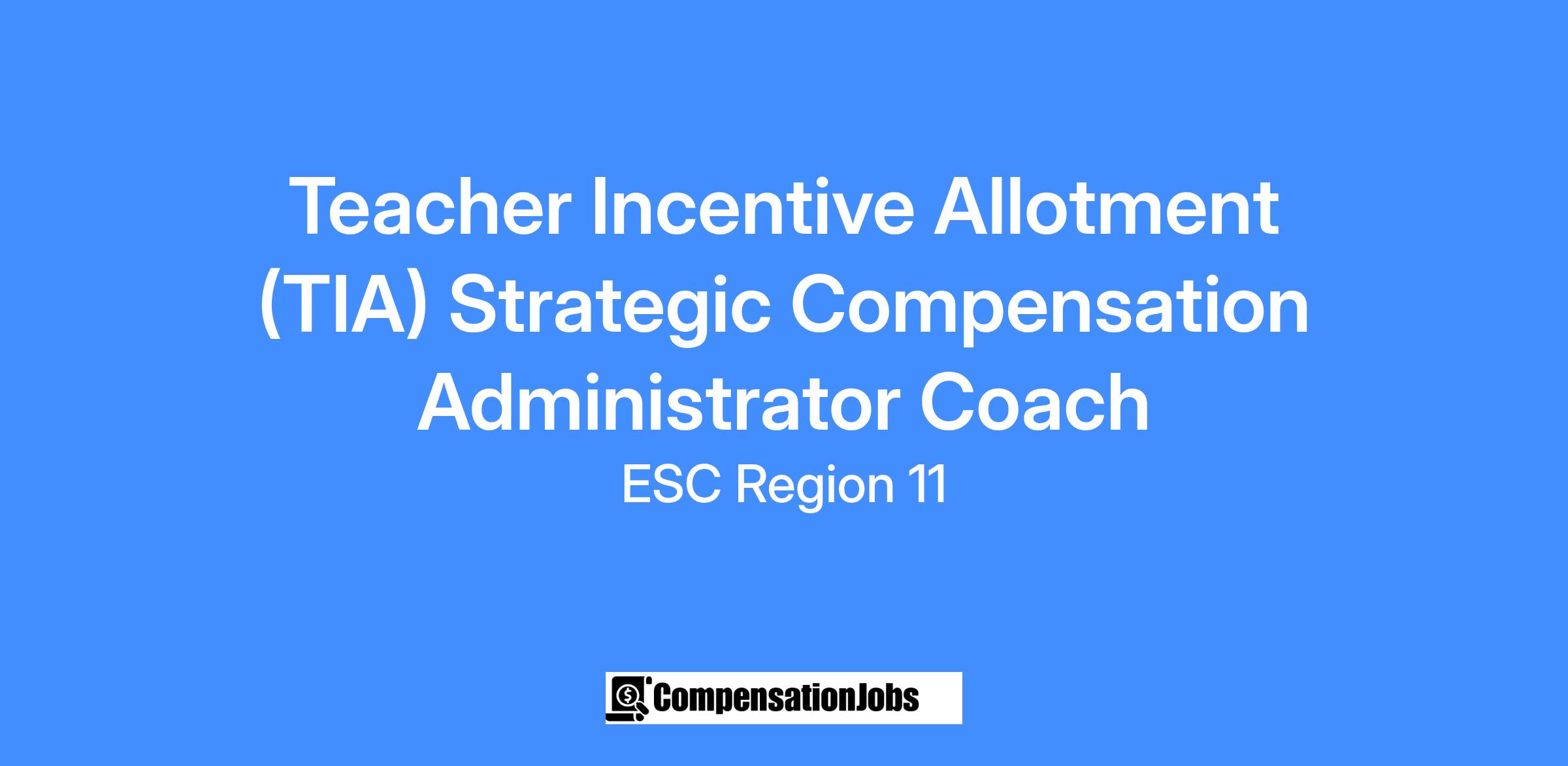 Job Title: Teacher Incentive Allotment (TIA) Strategic Compensation Administrator Coach