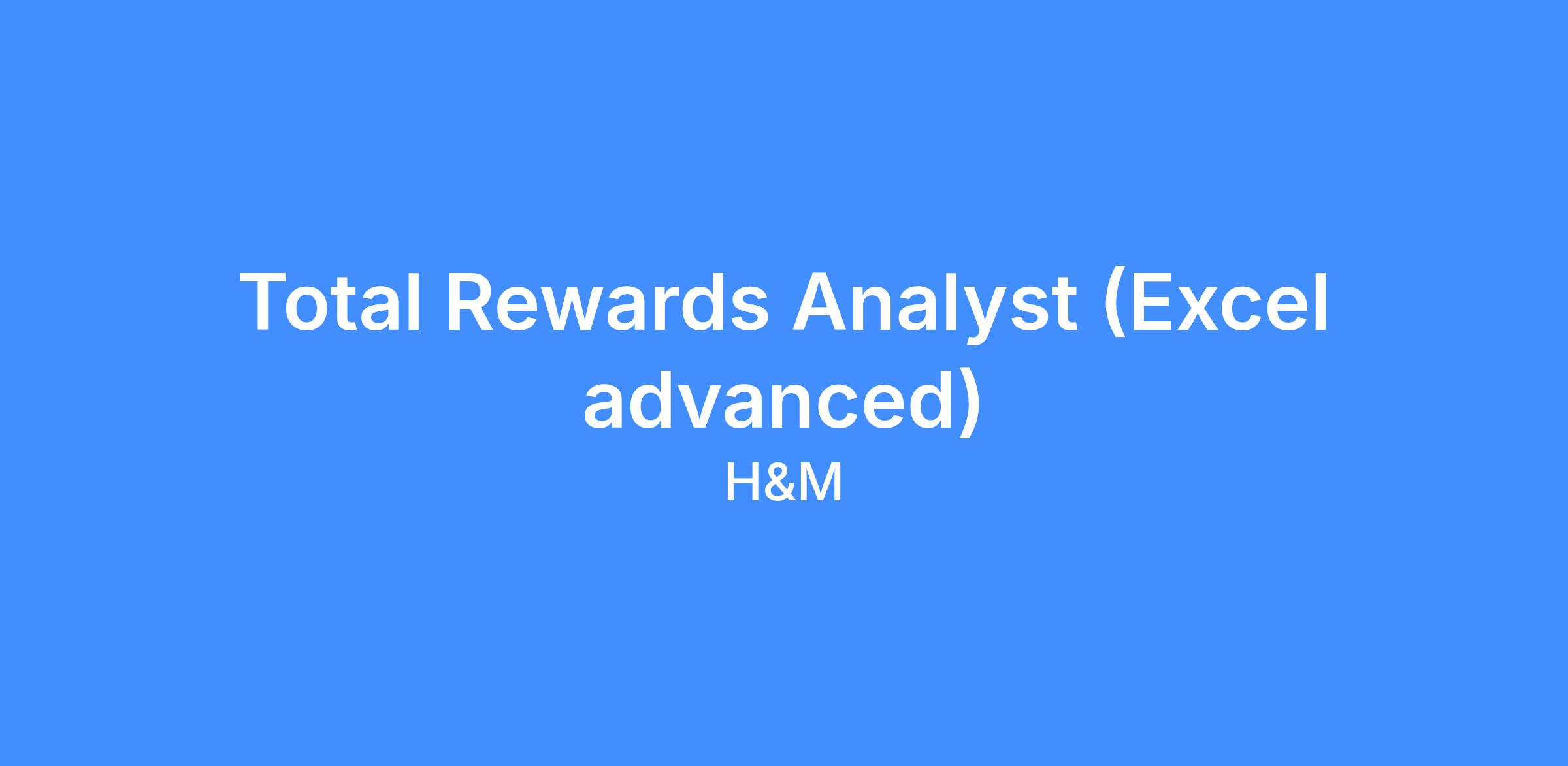 As a Total Rewards Analyst you will be part of the Central People Organization of H&M Group, and will report to Manager Rewards. You will work in close collaboration with Rewards Experts and other Total Rewards Analysts in the team and will engage with the broader global rewards community.