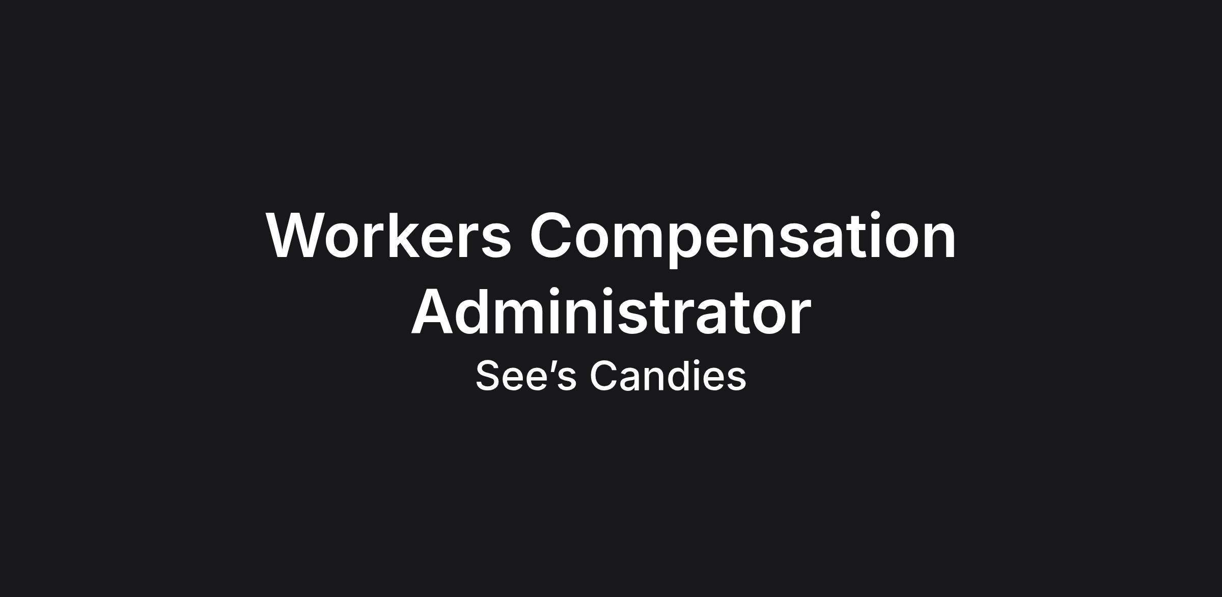 Reporting to the Workers Compensation Manager, the Workers Compensation Administrator will guide and assist the Human Resources Managers in the implementation of See's Workers Compensation procedures in accordance with all State Workers Compensation laws and regulations.