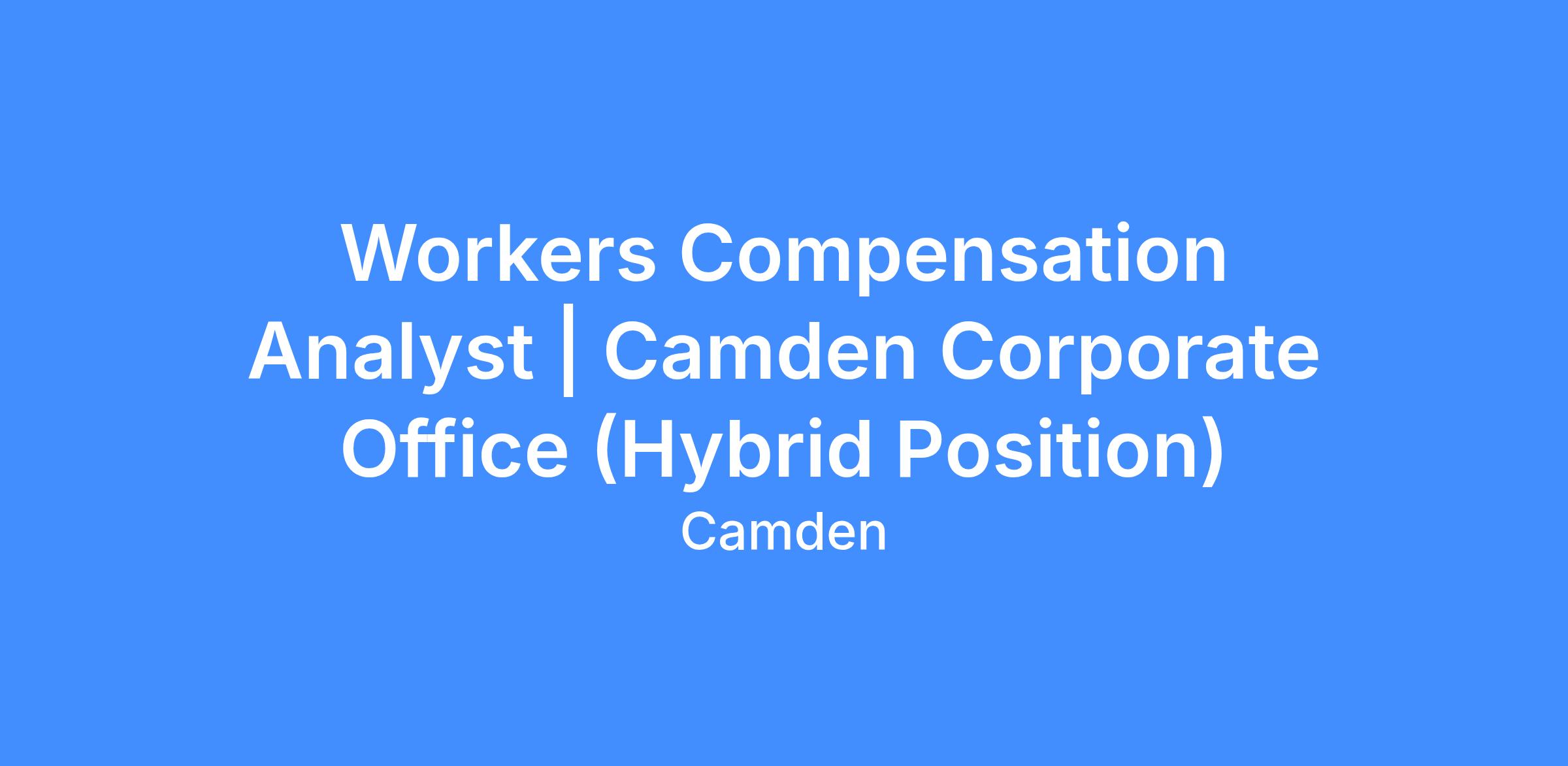 This position reports to the Workers’ Compensation Manager and plays a key role within Camden’s Total Rewards department in managing and supporting the organization’s workers’ compensation needs. The role ensures compliance with OSHA and state regulations, manages claims from initiation through resolution, and partners with internal and external stakeholders to mitigate risk and support employee well-being. In addition, the position provides strategic support for Total Rewards functions, including benefits and leave administration, audits, and cross-functional initiatives.